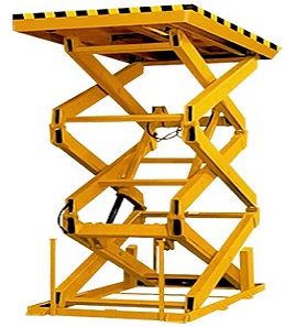 Criss-crossing metal supports that elongate as the platform is raise dare the basic feature.